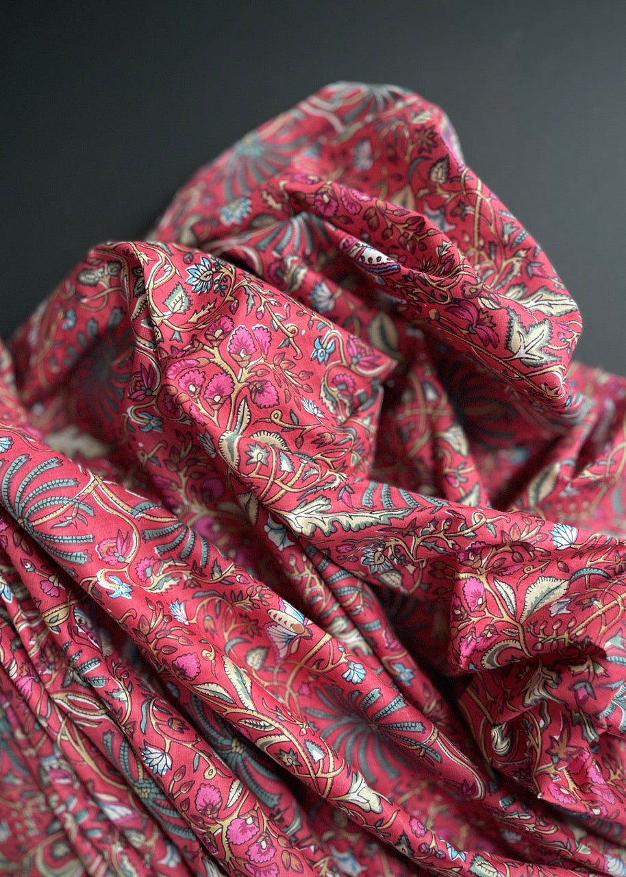 Hand Printed Cotton - Palmier Red
