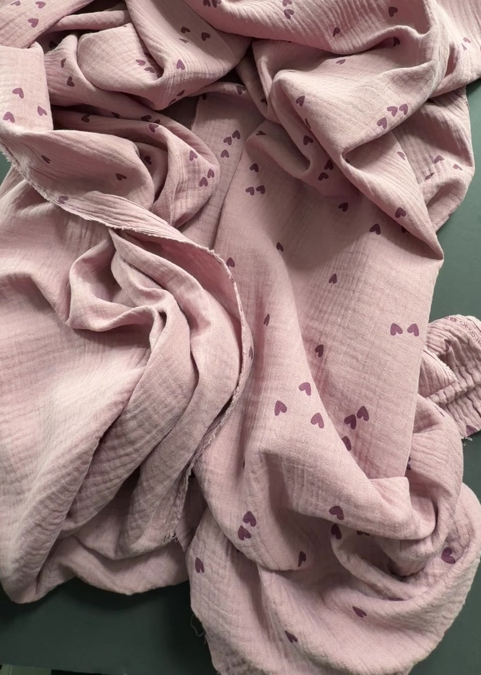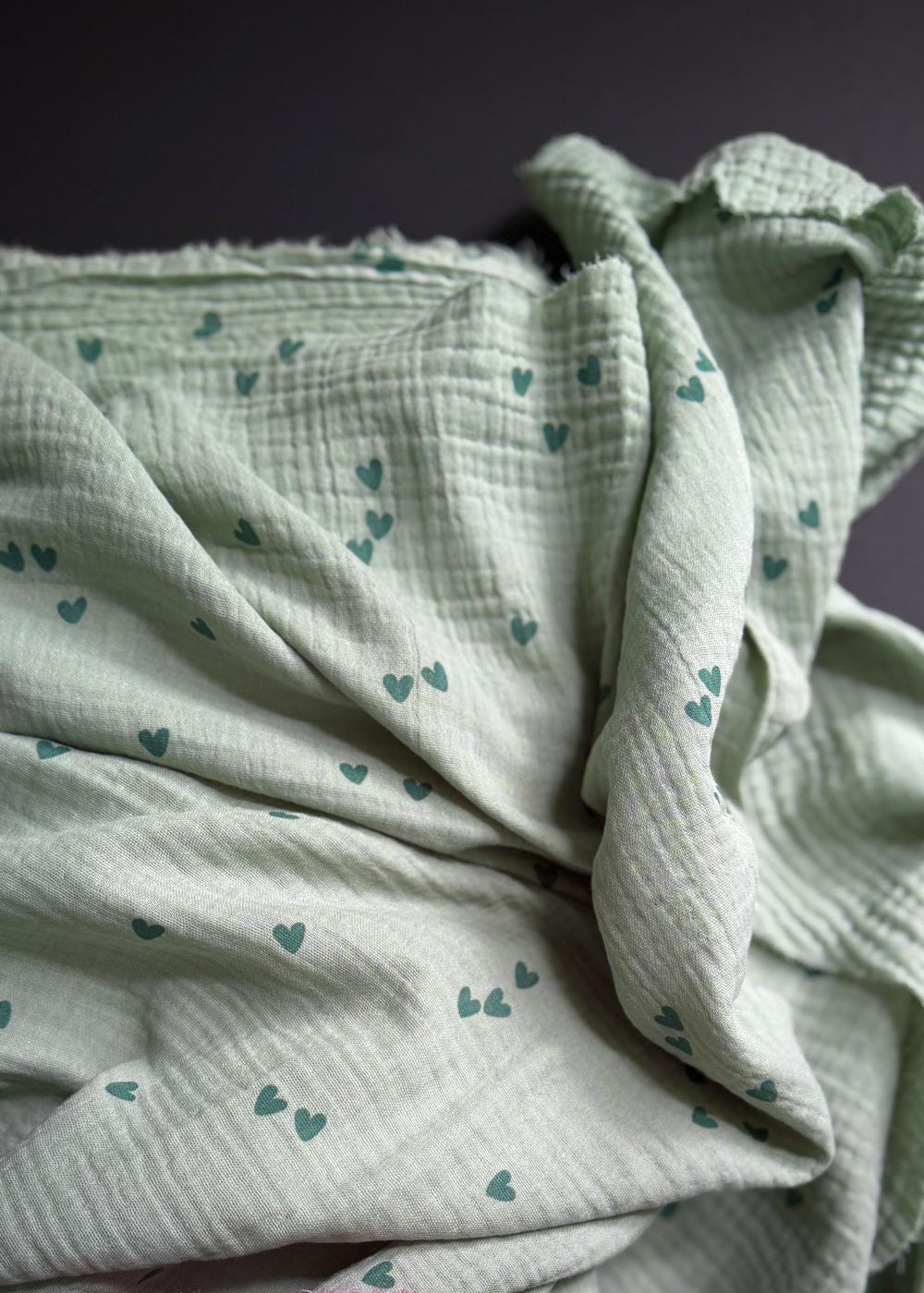 Cotton Double Gauze - Heart to Heart, Sage