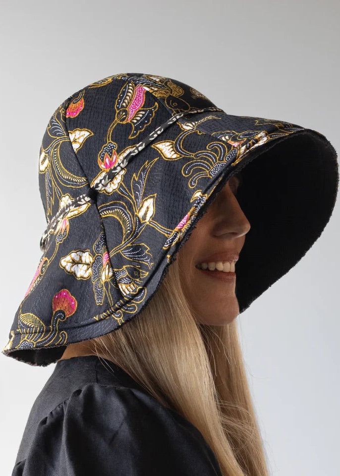 With extra curves and a deep brim, the shaping turns this sports hat in to a piece of sculpted millinery. Perfect for outdoor cocktails or a morning run. Make it in light denims to luxe silks. The level of statement is up to you.